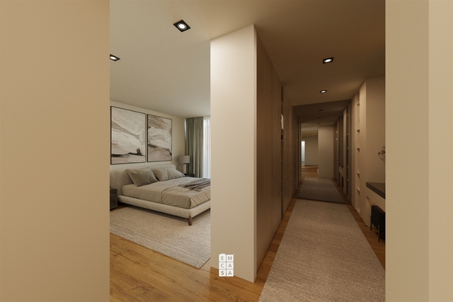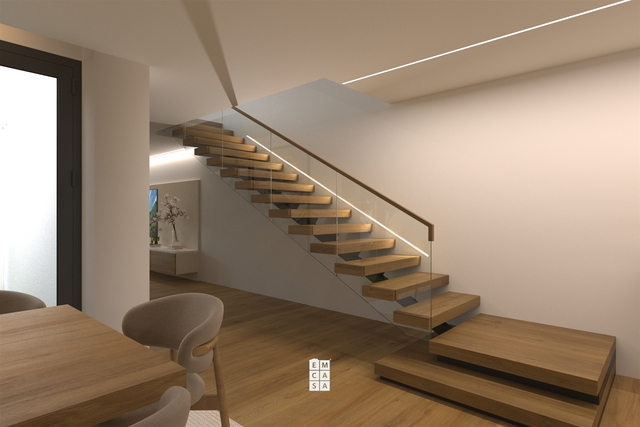 Na zona privada, os quartos garantem privacidade e conforto, sendo o +1 um espaço versátil que pode ser utilizado como escritório, sala de estudos ou quarto adicional, adaptando-se facilmente às necessidades da família.