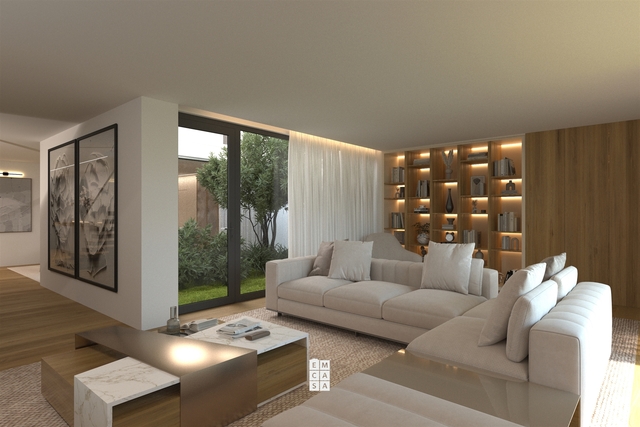 Implantada num lote de 348 m², a moradia apresenta uma área bruta de 273 m² e uma área útil de 182 m², oferecendo espaços amplos, bem distribuídos e com excelente luminosidade natural.