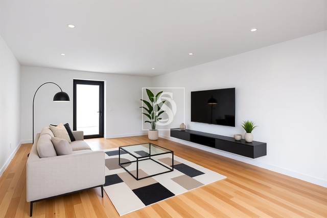 Sala e cozinha em open space, criando um ambiente moderno, amplo e luminoso.