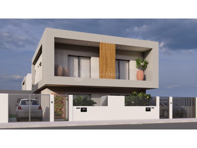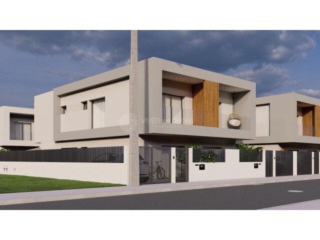 Moradia em construção, de 5 assoalhadas geminada duplex de arquitetura contemporânea, com um quarto no piso térreo, localizada em Pinhal General, numa zona consolidada de moradias.
