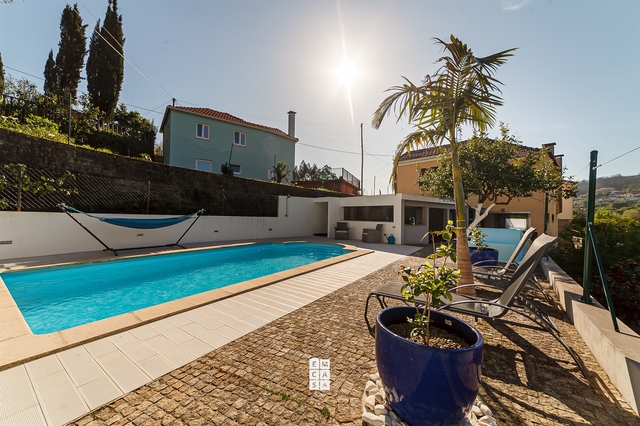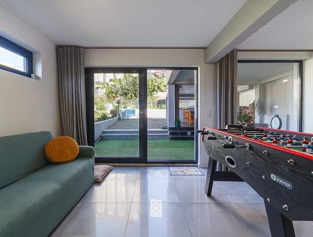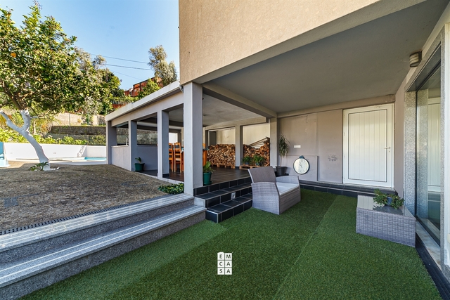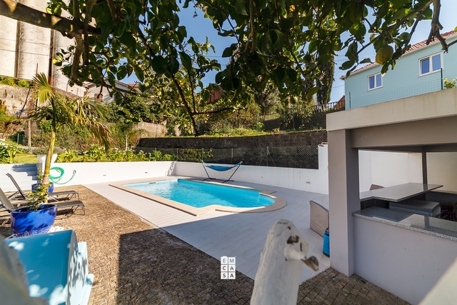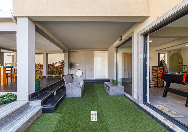 No exterior, esta moradia destaca-se por uma agradável zona de lazer, com piscina aquecida e espaço de churrasco, ideal para desfrutar de momentos únicos ao ar livre durante todo o ano.