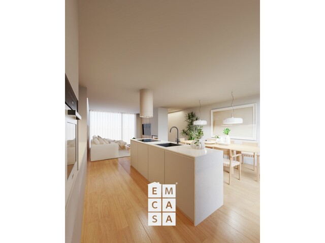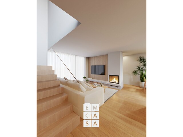 Moradias T3 de linhas modernas, com acabamentos de qualidade superior: pavimentos vinílicos e cerâmicos MARGRÊS, carpintarias lacadas, escadas em madeira maciça com guardas em vidro, cozinhas totalmente equipadas com eletrodomésticos TEKA e bancadas em compósito mineral.