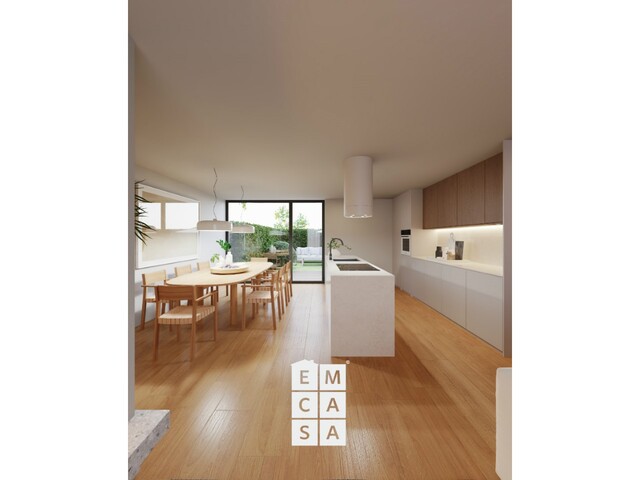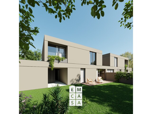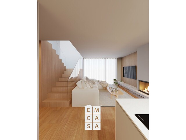 Moradias T3 de linhas modernas, com acabamentos de qualidade superior: pavimentos vinílicos e cerâmicos MARGRÊS, carpintarias lacadas, escadas em madeira maciça com guardas em vidro, cozinhas totalmente equipadas com eletrodomésticos TEKA e bancadas em compósito mineral.
