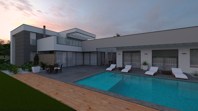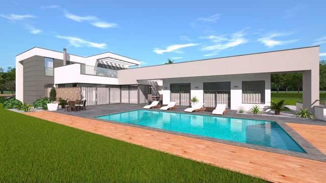 Moradia em Construção ? Elegância, Privacidade e Conforto num Refúgio de Sonho Num cenário de total tranquilidade, rodeada pela serenidade da natureza, ergue-se esta magnífica moradia contemporânea implantada num terreno de 5.000 m², pensada para quem valoriza o equilíbrio entre luxo, conforto e privacidade. Com linhas modernas e arquitetura harmoniosa, a propriedade distribui-se por dois amplos pisos, onde cada detalhe foi cuidadosamente concebido para oferecer bem-estar e sofisticação. No piso térreo, a zona social integra uma ampla e luminosa sala com acesso direto ao jardim e à piscina, criando o cenário perfeito para momentos de convívio e lazer. A cozinha, moderna e totalmente equipada, alia design e funcionalidade. Este piso conta ainda com lavandaria, garagem e três elegantes suites com acabamentos de elevada qualidade. O piso superior distingue-se pela sua privacidade e versatilidade, com uma quarta suite, uma sala com kitchenette e dois amplos terraços, ideais para desfrutar da paisagem envolvente e dos longos dias de sol algarvios. No exterior, surgirá um jardim paisagístico e a piscina de design contemporâneo completam este refúgio de requinte, perfeito para quem procura espaço, sossego e exclusividade. Os materiais e acabamentos, já selecionados e adquiridos, asseguram uma construção de padrão superior e uma identidade arquitetónica coerente. Uma oportunidade rara para viver com distinção num cenário verdadeiramente reservado.