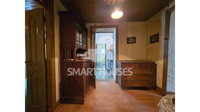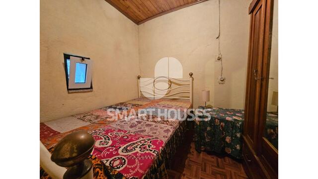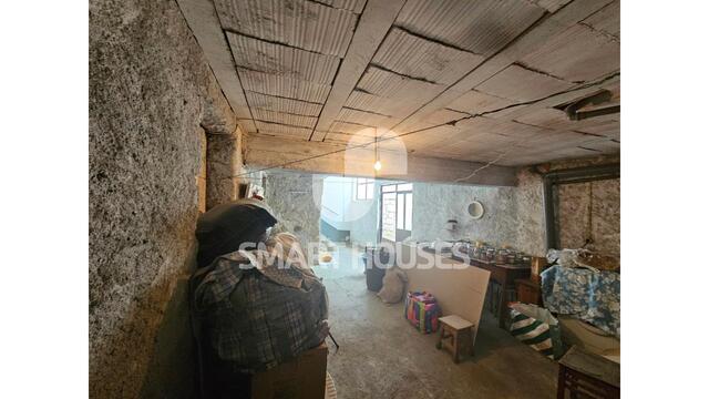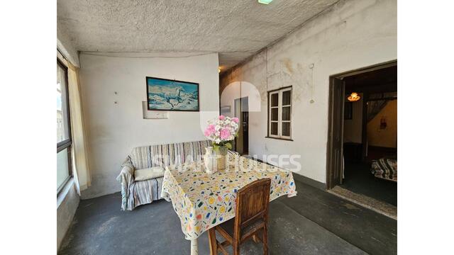 - 1º andar, ao qual se acede diretamente pelo pátio interior através de escadaria antiga em pedra para uma marquise fechada que distribui para a cozinha, com lareira e despensa, e para uma sala que dá acesso a um quarto e a outra sala que dá acesso para os outros dois quartos, e um W.C. completo.