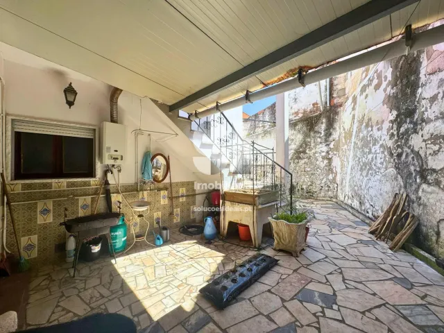 A moradia conta com janelas em madeira e pátio com poço, que confere um charme rústico e funcional à propriedade.