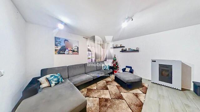 SALA de ESTAR ampla e luminosa, equipada com caldeira a pellets, ideal para momentos em família.