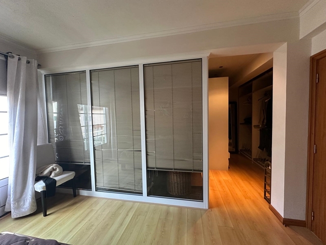 Quarto de casal com banheiro privativo e banheira de canto, com quarto de vestir incluído e varandim para a zona da entrada da vila de Velas, dois quartos de cama com varanda para a Avenida do Livramento, uma casa de banho comum no piso de cima e ainda um escritório também com varanda mas para a montanha.