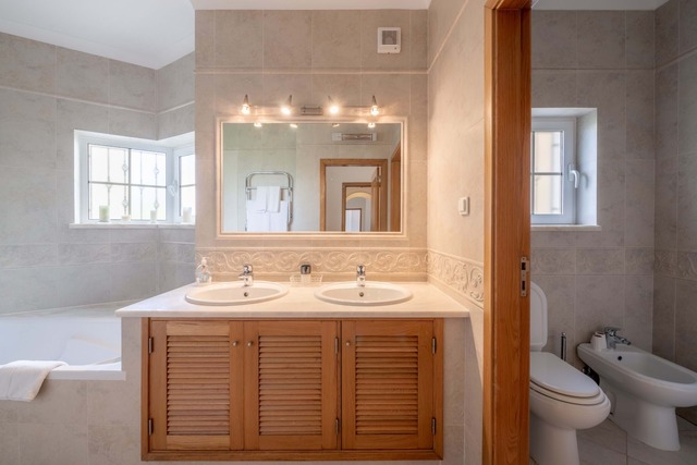 As comodidades externas são igualmente impressionantes, com piscina privada aquecida, grandes terraços e jardim em camadas com sistema de irrigação. Aproveite o sol quente do Algarve e relaxe à beira da piscina, ou faça uma curta viagem de 5 minutos até a praia de Salema para um dia de diversão ao sol. Para os amantes do golfe, a casa está convenientemente localizada próxima ao driving range e acima do 9º buraco.