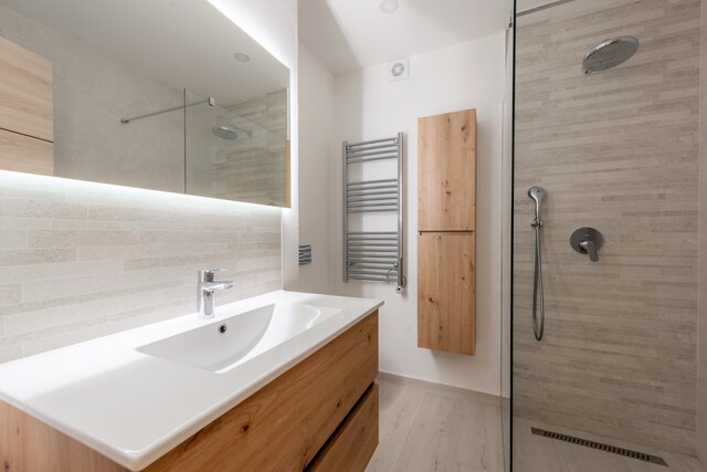 Enjoy the bright living area, complete with a wood burner and double glazing for year-round comfort. Step out onto the large balcony or relax on the terrace with sunloungers, taking in the sea and urbanisation views. The shared pool and on-site gym provide excellent leisure options within the development.