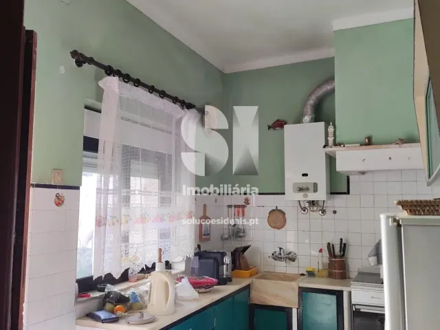 Moradia composta por dois anderes sucetíveis de utilização independente, sendo no rés do chão um T3 com garagem, cozinha equipada, garagem e quintal.