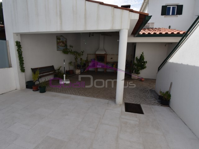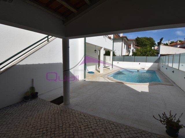 No exterior, a propriedade tem piscina de água salgada, telheiro com churrasqueira, uma casa de banho de apoio e pátio. O acesso à garagem em cave faz-se lateralmente e também pelo interior, permitindo o estacionamento de, pelo menos, quatro automóveis.