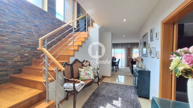 Desfrute do conforto proporcionado pelo aquecimento central, aquecimento de água por bomba de calor, ar condicionado, aspiração central, lareira com recuperador, estores elétricos, gás canalizado e caixilharia em alumínio com vidros duplos. A moradia conta ainda com um bonito jardim, churrasqueira e três varandas, onde poderá desfrutar de momentos de lazer e convívio.