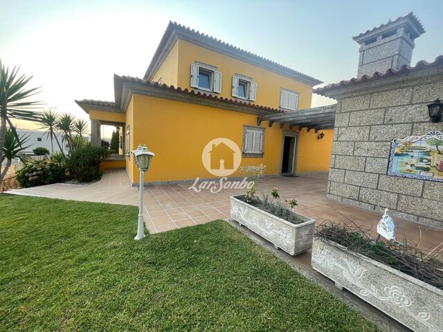 Com quatro espaçosas suítes, quatro casas de banho, cozinha totalmente equipada e uma ampla sala de estar, esta moradia oferece todo o conforto e comodidade que procura. Além disso, conta com um total de cinco lugares de garagem, aquecimento central, caixilharia em alumínio com vidros duplos, alarme e muito mais.