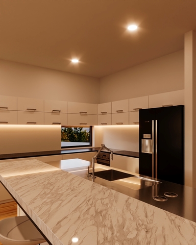 A moradia está equipada com bomba de calor, painéis solares, pré-instalação de Ar Condicionado, caixilharia de alumínio e vidro laminado, porta de segurança anti-intrusão, a cozinha com móveis em termo-laminado mate em branco e preto, com tampo em silestone Iconic Black, equipadas eletrodomésticos da marca BOSCH, nomeadamente placa indução, forno, exaustor, micro-ondas, máquina de lavar louça e combinado e máquina de lavar roupa.