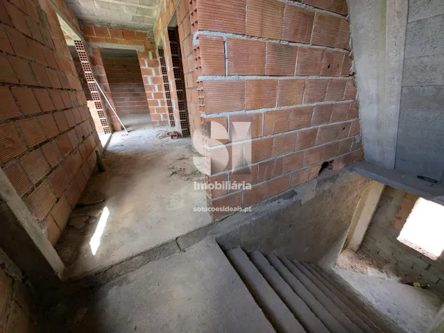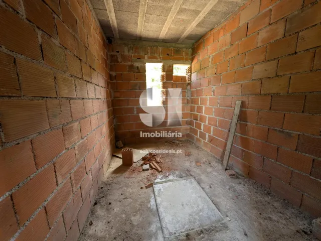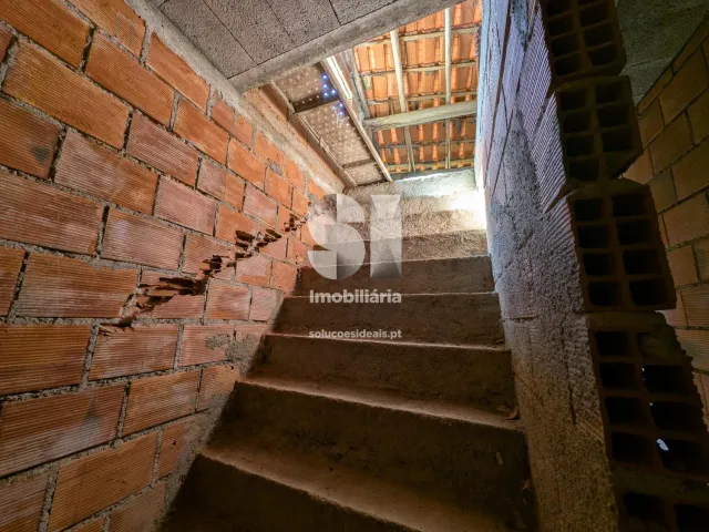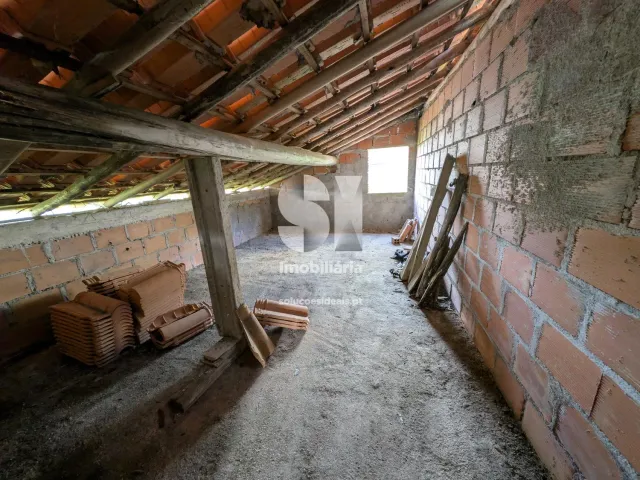 A Moradia é distribuída por três pisos: rés do chão, primeiro andar e sótão com um bom pé direito. Lateralmente à moradia está parte do terreno, onde poderá construir uma garagem com boas áreas. A moradia encontra-se por acabar e será para ser acabada pelo respetivo comprador. Tendo a vantagem de poder ser o comprador a acabá-la com os acabamentos que desejar.