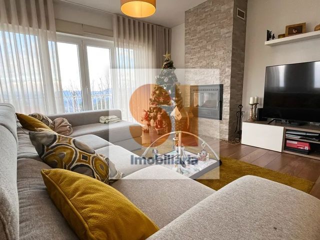 Em estado irrepreensível de conservação, apresentando-se praticamente como nova, esta moradia de elevado padrão encontra-se totalmente mobilada e equipada, destacando-se pela qualidade dos acabamentos, pela excelente funcionalidade e pela harmonia entre os espaços interiores e exteriores. A área social desenvolve-se em open-space, integrando cozinha, sala de jantar e sala de estar, proporcionando um ambiente amplo, luminoso e sofisticado. A zona privada é composta por suíte e dois quartos, que dispõem de roupeiros embutidos, e uma casa de banho familiar completa. O piso inferior oferece uma área versátil de elevado potencial, ideal para a criação de sala de cinema privada, escritório, ginásio ou unidade habitacional independente, com possibilidade de adaptação a tipologia T0 ou T1. Este piso inclui ainda dois espaços de arrumos e uma casa de banho de serviço. O imóvel dispõe de lareira com recuperador de calor e aquecimento elétrico, assegurando conforto térmico durante todo o ano.