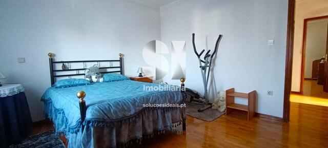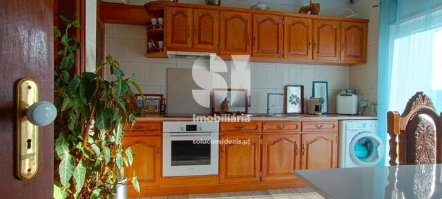 Pavimento cerâmico nas casas de banho e cozinhas, na sala, quartos e hall de entrada pavimento flutuante.