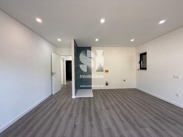 - Sala e Cozinha em Open-Space (sendo que ainda falta colocar os móveis de cozinha e o corrimão, na sala, que liga à cave)