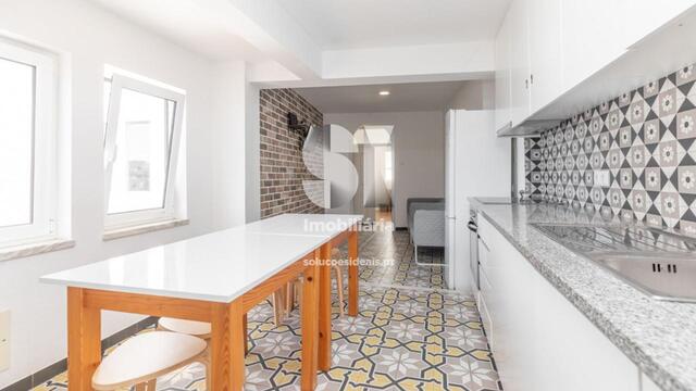 Rés-do-chão, com entrada independente, encontra-se uma cozinha em open space, 1 WC e 2 quartos, sendo um deles com varanda.