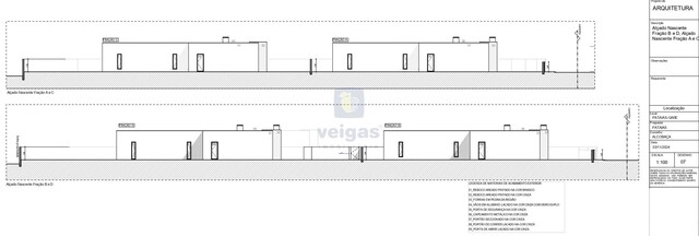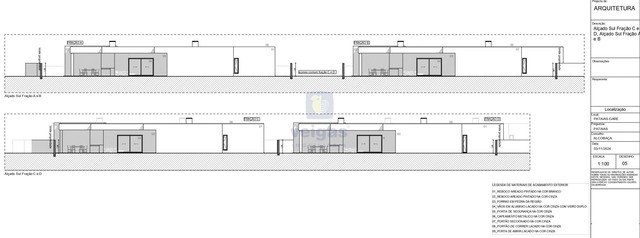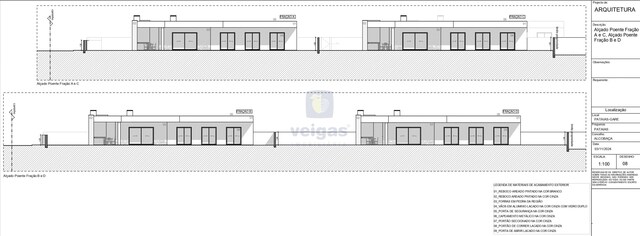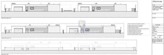 Construção em alvenaria com tijolo térmico 25mm, isolamento capoto 8 cm, paredes interiores com tijolo 11 revestido a reboco projetado; tetos falsos com isolamento lã de rocha e projetores led embutidos; caixilharia em alumínio termo-lacados com vidro duplo e corte térmico; muro exterior com tijolo de 15, a fechar a propriedade , com altura de 1,5m atrás e laterais, na frente com 1 , rebocado e pintado.