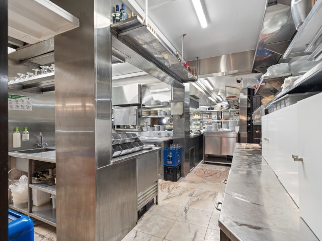 Cozinhas totalmente equipadas - uma dedicada exclusivamente a pizzas - prontas a operar.