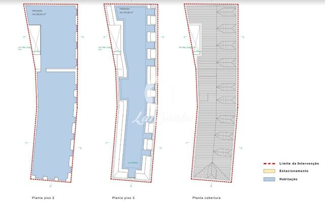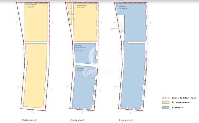 Áreas afectas aos usos pretendidos - Habitação: 862.79m2, Estacionamento:376.25 m2