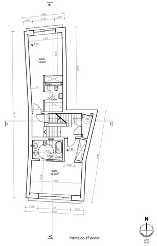 No primeiro andar encontram-se duas suítes espaçosas, com acesso direto ao terraço na cobertura.