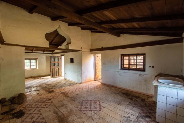 A casa, que precisa de remodelação, tem um só piso, cinco quartos e oferece vistas deslumbrantes sobre a Barragem da Bravura.