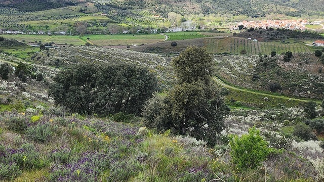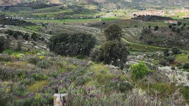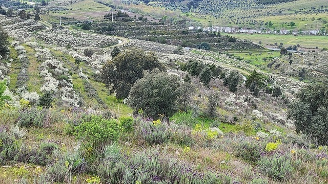 Olivieras e sobreiros em patamares perto da barragem do Cachão - Mirandela