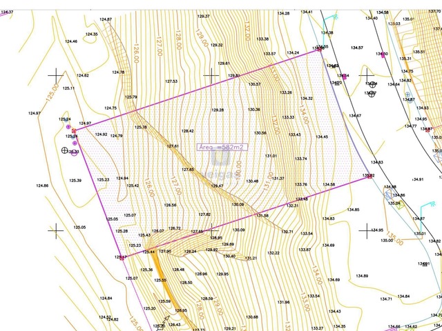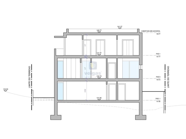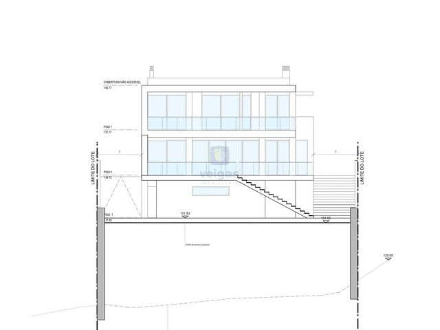 O terreno apresenta uma frente de 17,6 metros, com 33 metros de comprimento, com inclinação, o que favorece a construção de moradia com cave.