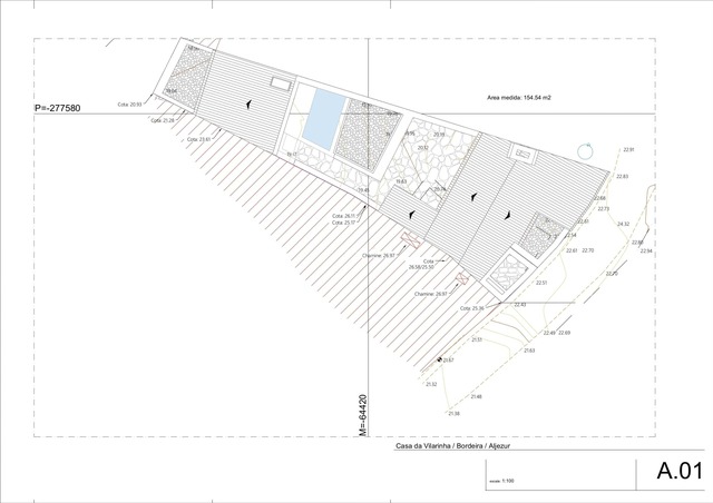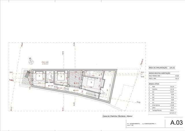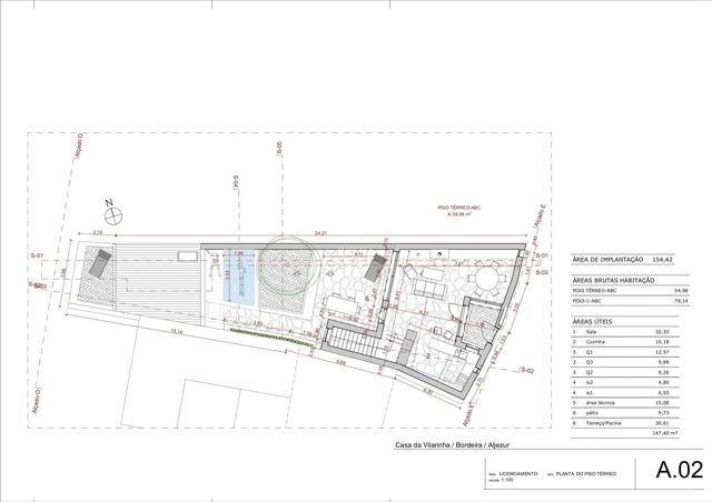 Lote de terreno urbano de 170m2 com projeto aprovado para construção de uma moradia de dois pisos, com três quartos e 154m2 (133m2 habitáveis) com terraço, pátio e pequena piscina, localizado na atraente e popular aldeia da Vilarinha, perto da Carrapateira.