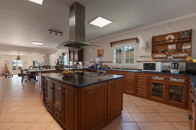 - 3 large rooms, one of them with an open space kitchen, with a stove on the central island;