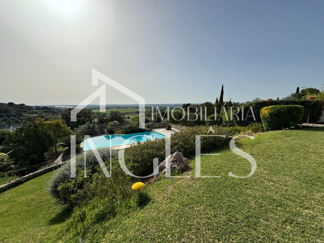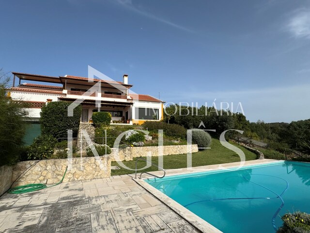 Fantastic villa with panoramic views of the Lezíria and the Tagus River. Inserted in a plot of land with an area of 1,931.27m˛, fully walled and fenced. With anti-seismic concrete infinity pool with depth 1.20mt to 1.90mt, with safety margin, with magnificent view over the Lezíria and with excellent sun exposure, garden with automatic irrigation divided into 7 sectors. Access to the property with automatic gate and with several fruit trees. Garage with two gates, one automatic and with capacity for 2 vehicles.