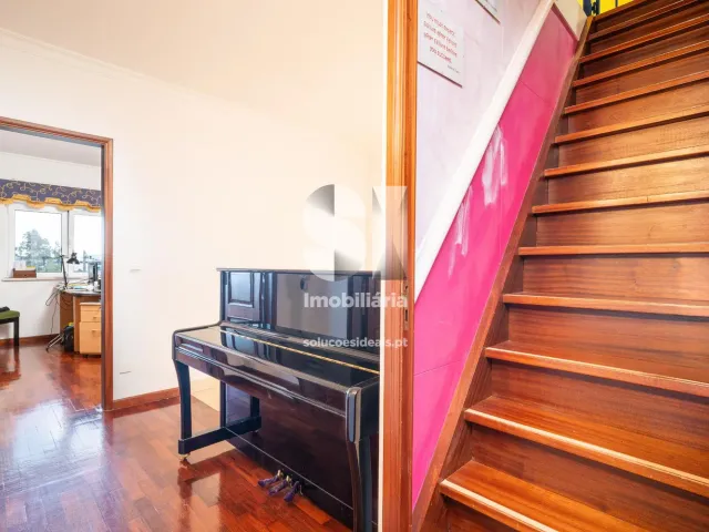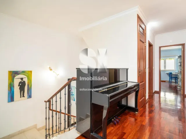 No primeiro andar temos a zona com quatro quartos sendo um deles uma suite com varanda e vistas da cidade, no último piso temos um sótão amplo com cerca de 80 m2 em excelente estado e com muita luz natural.