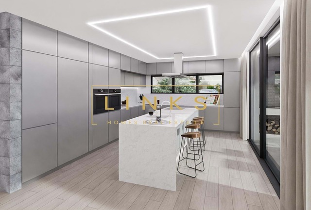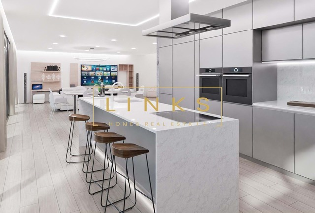 The Kitchen: A designer space with a central island, designed to be both a place for culinary creation and a social gathering point.