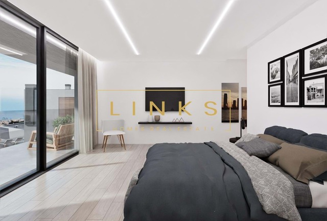 Outdoor Leisure: The living room extends onto a magnificent terrace and garden areas. Solarium and outdoor leisure areas, where the blue of the sea is the constant backdrop, creating the perfect environment for entertaining friends or relaxing with the family.