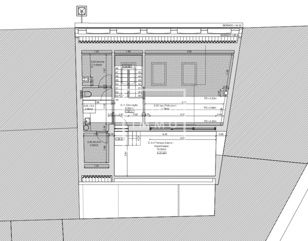 The top floor, only accessible by the stairs, offers a space of 28m2 that can be used as a family room or a bedroom, this floor gives access to the terrace of 24m2.