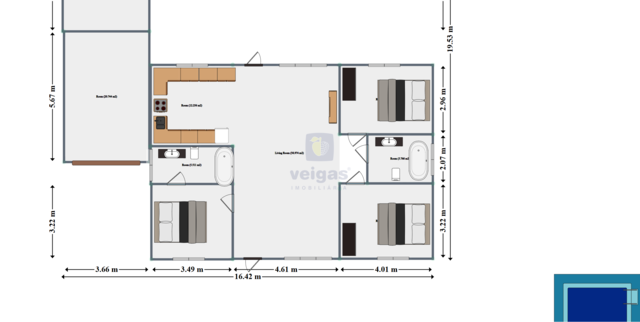 The highlight of this property is the impressive swimming pool, perfect for hot summer days.