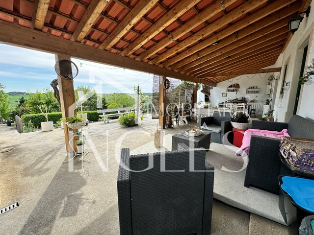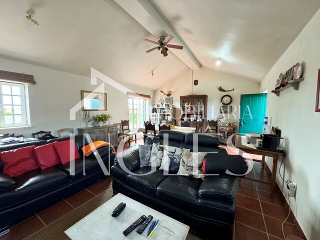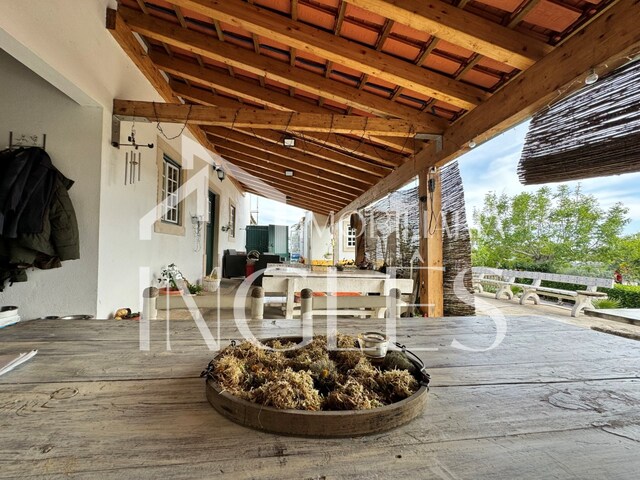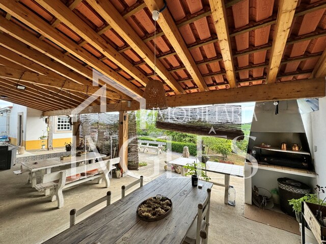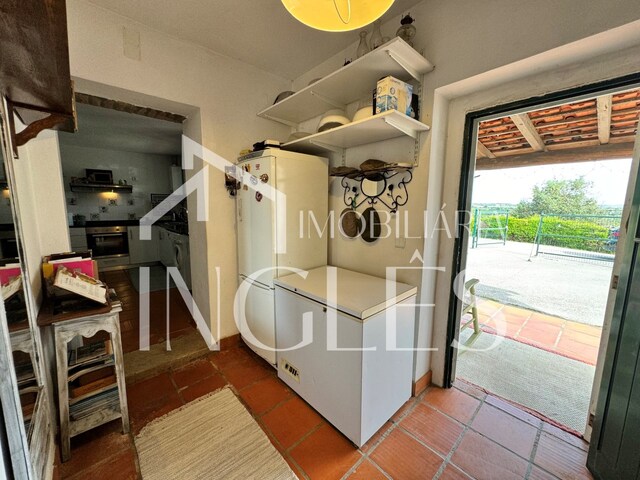 3 bedroom villa consisting of living room with fireplace and fireplace, with access to a terrace with panoramic views of the Lezíria, entrance hall, kitchen with typical fireplace with fireplace, access corridor to the bedrooms with connection to the porch of the patio, 3 bedrooms without wardrobe, staircase to access the use of the attic, which is large with the possibility of increasing the number of bedrooms and 2 bathrooms, One of which is with a shower. Fantastic porch in cone wood, with panoramic views, barbecue area and sink.
