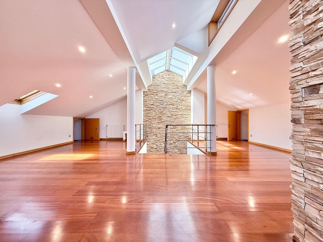 Discover this elegant T4 house in Valongo, perfect for those seeking comfort, sophistication, and proximity to the city of Porto. Located in a quiet residential area, this property stands out for its modern design, premium materials, and excellent condition. Natural light, combined with top-quality finishes, creates a welcoming and functional atmosphere in every room. Key Features: 4 bedrooms with built-in wardrobes, 2 of them en-suite, all with balcony access 5 modern and well-distributed bathrooms Spacious living room with natural slate stone wall and a heat-recovering fireplace Granite-equipped kitchen with central island and dining area Sucupira hardwood floors ? noble and durable Attic adapted for use as an office or leisure area Private garden with barbecue space Large garage with automatic gate Integrated smart home system, central vacuum, solar panels, and central heating, ensuring comfort and energy efficiency Prime Location: Close to Valongo City Park and green areas Schools, supermarkets, pharmacies, and local shops within minutes Good connection to Valongo Train Station and public transport Easy access to the Santa Justa Mountains ? perfect for walks and nature activities Quick access to A4 and A41 highways, just 15 minutes from Porto A unique opportunity for those looking for a spacious, modern, and efficient home in a tranquil yet well-connected area.