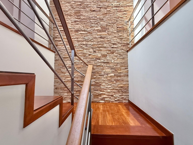 Discover this elegant T4 house in Valongo, perfect for those seeking comfort, sophistication, and proximity to the city of Porto. Located in a quiet residential area, this property stands out for its modern design, premium materials, and excellent condition. Natural light, combined with top-quality finishes, creates a welcoming and functional atmosphere in every room. Key Features: 4 bedrooms with built-in wardrobes, 2 of them en-suite, all with balcony access 5 modern and well-distributed bathrooms Spacious living room with natural slate stone wall and a heat-recovering fireplace Granite-equipped kitchen with central island and dining area Sucupira hardwood floors ? noble and durable Attic adapted for use as an office or leisure area Private garden with barbecue space Large garage with automatic gate Integrated smart home system, central vacuum, solar panels, and central heating, ensuring comfort and energy efficiency Prime Location: Close to Valongo City Park and green areas Schools, supermarkets, pharmacies, and local shops within minutes Good connection to Valongo Train Station and public transport Easy access to the Santa Justa Mountains ? perfect for walks and nature activities Quick access to A4 and A41 highways, just 15 minutes from Porto A unique opportunity for those looking for a spacious, modern, and efficient home in a tranquil yet well-connected area.